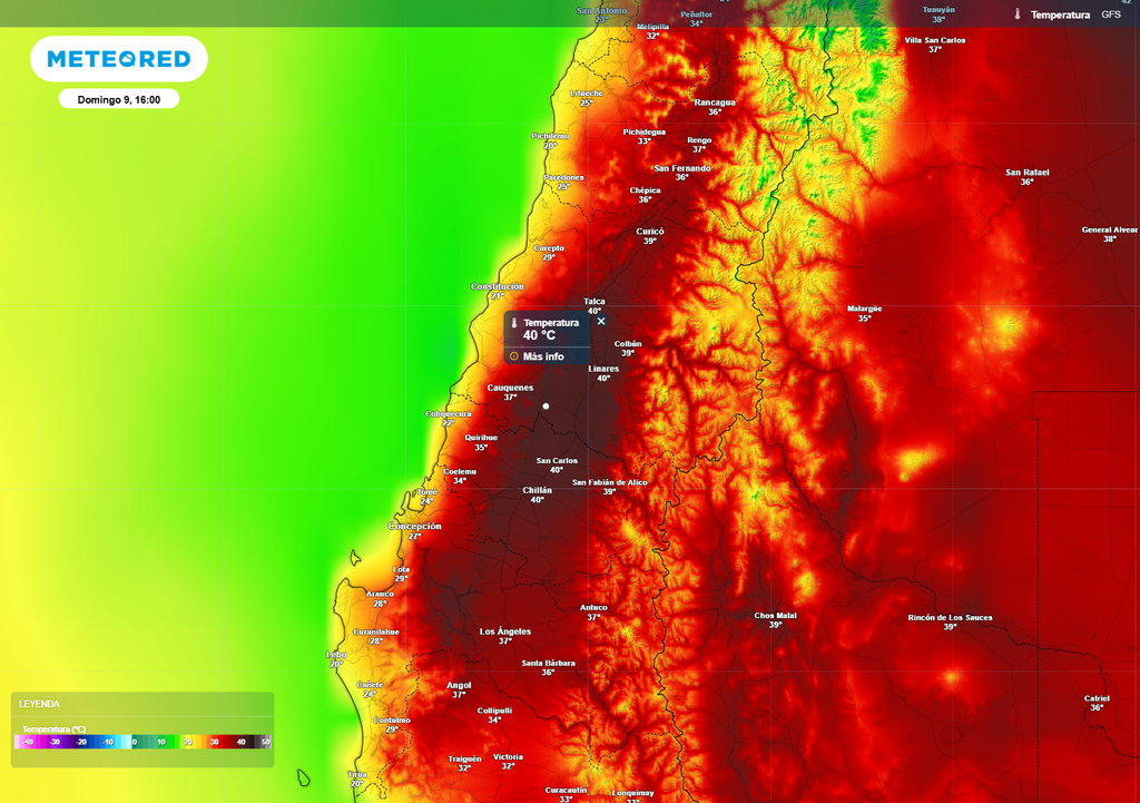 En Meteored, también hemos seguido de cerca los pronósticos de calor extremo que se esperan y confirmamos la alarma emitida por la Dirección Meteorológica de Chile. Las temperaturas en el centro sur de Chile podrían alcanzar los 40°C este fin de semana, una situación que no solo afecta a las regiones de Maule y Ñuble, sino también a otras regiones adyacentes, lo que representa una amenaza significativa para la salud y el bienestar de la población.
