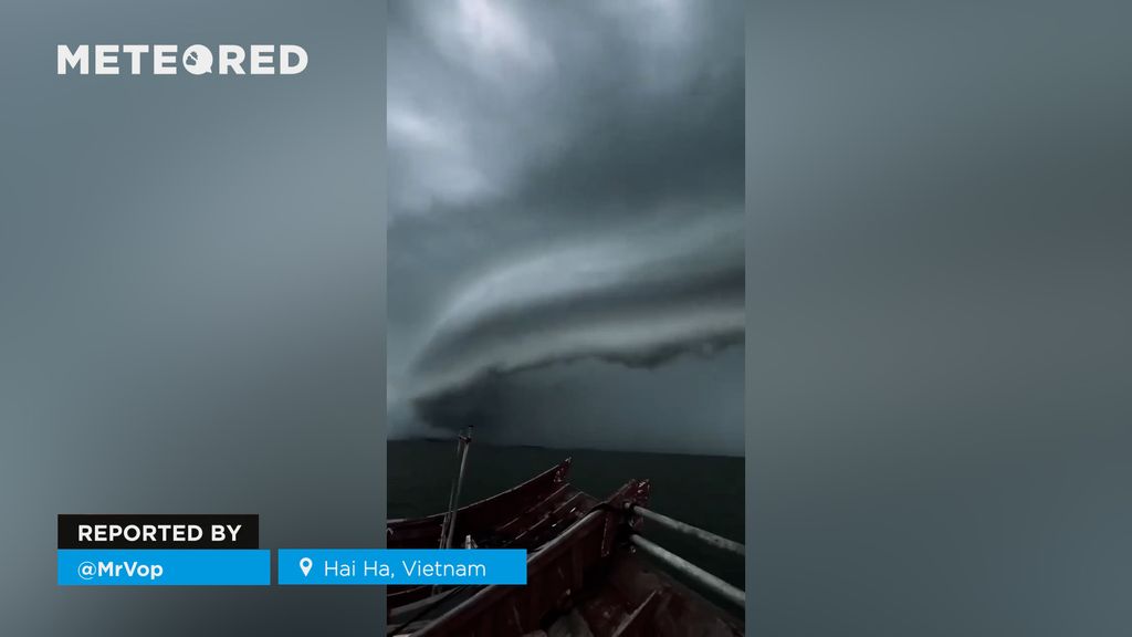 En medio del mar, pescadores de Hai Ha -Vietnam- fueron visitados por una nube de estantería (shelf cloud) mientras ejecutaban su labor. En el video se aprecia que uno de los tripulantes muestra con su cámara el barco en el que iban, a medida que la nube se desarrollaba y acercaba hacia ellos.