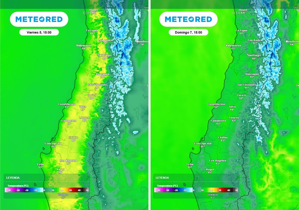 En la Región del Maule, el viernes estará despejado con mínimas de hasta 1 °C en el interior y máximas cercanas a 20 °C. El sábado predominará la nubosidad parcial, con mínimas de 4 °C y máximas que llegarán a los 20 °C.