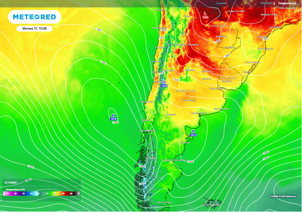 El fortalecimiento del anticiclón subtropical del Pacífico, junto con el desplazamiento de un anticiclón migratorio hacia el lado argentino, generará un bloqueo atmosférico que impedirá el avance de perturbaciones frontales hacia la zona central.