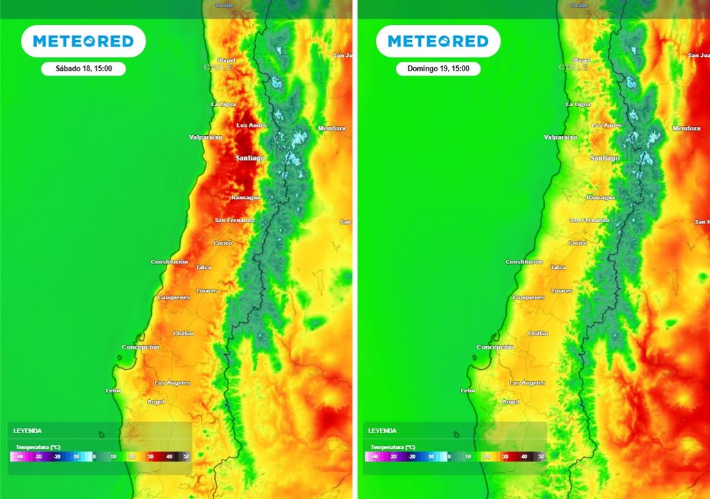 Durante el viernes (17), el aire seco comenzará a dominar la atmósfera sobre las regiones de Valparaíso, Metropolitana y O’Higgins, con cielos despejados y un aumento progresivo de las máximas. El sábado (18), el efecto del flujo del este será más notorio, y las temperaturas alcanzarán su punto más alto.