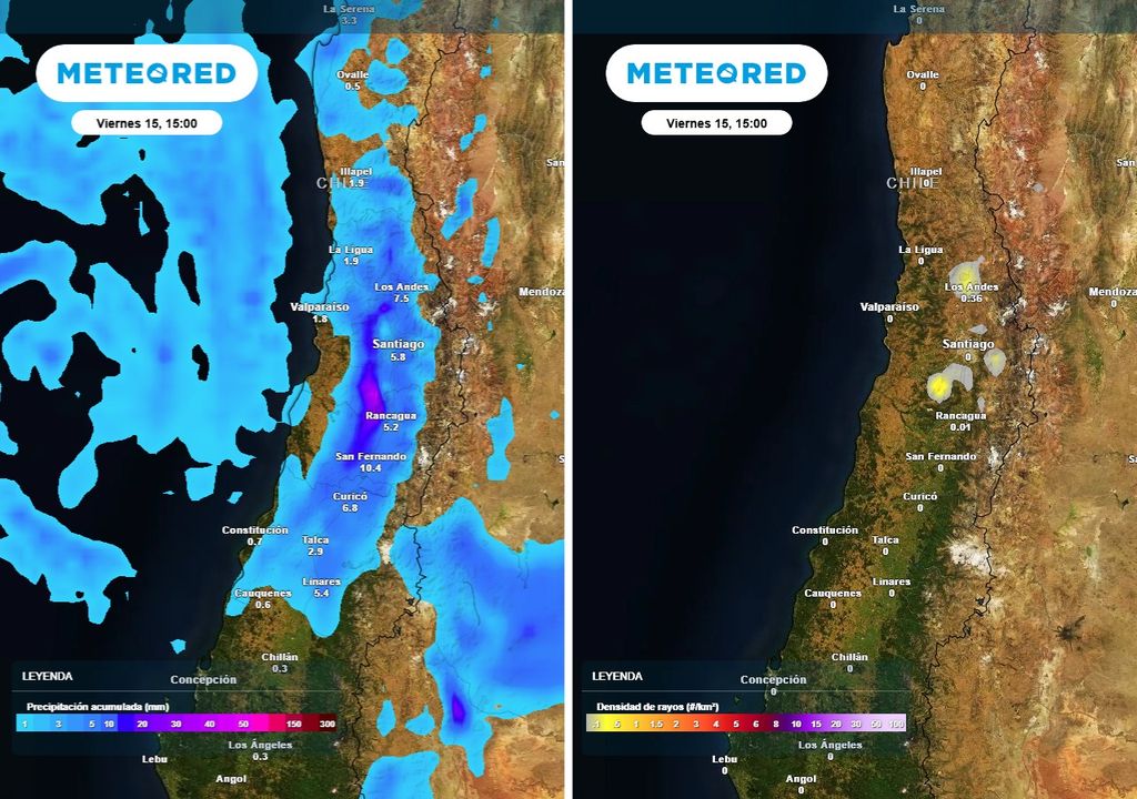 El impacto se sentirá desde la región de Coquimbo hasta el Maule, aunque la mayor actividad de tormentas eléctricas se concentrará en las regiones de Valparaíso, Metropolitana y O’Higgins.