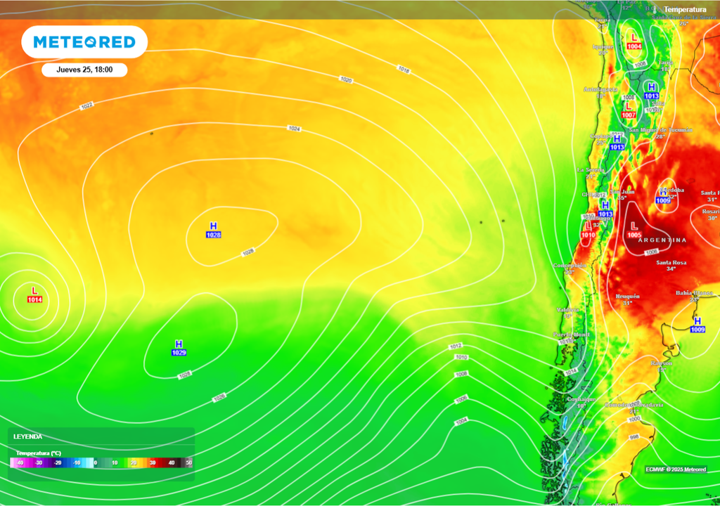 El modelo meteorológico europeo ECMWF anticipa condiciones de calor extremo para la zona central de Chile desde este jueves 25 hasta el domingo 28 de diciembre. Este episodio de altas temperaturas se debe a la configuración sinóptica caracterizada por una alta presión atmosférica en altura y el desarrollo de una baja costera, fenómeno que elevará significativamente los termómetros desde la región de Coquimbo hasta el Maule.