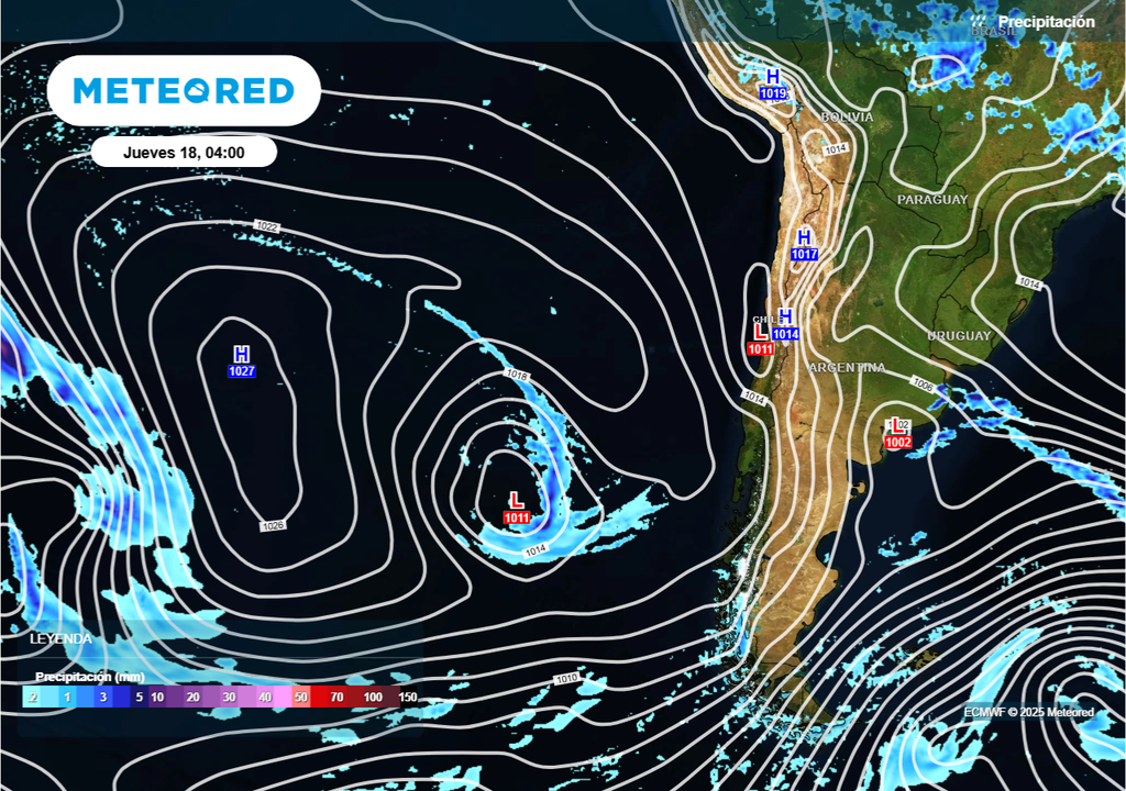 Chillán registrará lluvias débiles con 2 a 3 milímetros acumulados. Las temperaturas se estabilizarán en rangos más frescos, con Santiago en 25 °C, Talca subiendo levemente a 28 °C, y la zona costera manteniéndose entre 17 y 22 °C.
