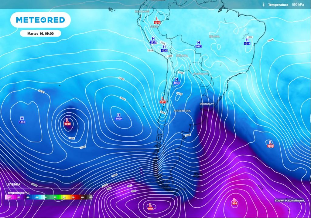 El modelo meteorológico europeo ECMWF proyecta condiciones predominantemente soleadas y cálidas para la zona central durante los próximos días. Esta situación es consecuencia de un sistema de alta presión en niveles medios y altos de la atmósfera, que actuará como una "tapa" impidiendo el desarrollo de nubes y favoreciendo el calentamiento diurno.