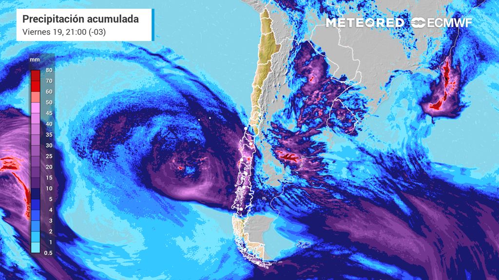 El modelo ECMWF indica, además, cierta inestabilidad atmosférica en niveles medio‑altos, lo que podría intensificar los chubascos en algunos sectores precordilleranos. Dependiendo de la topografía, podría haber aumentos puntuales de precipitaciones localizadas y rutas cordilleranas afectadas.