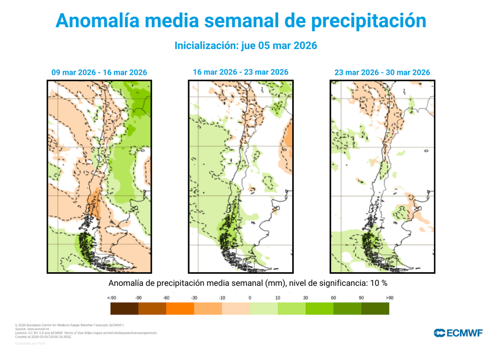 Pero este marzo 2026 podría ser diferente de lo normal. Al menos eso es lo que proyectan los resultados más recientes de los modelos de pronósticos que nos entrega el Centro Europeo de Pronóstico de Mediano Plazo (ECMWF).