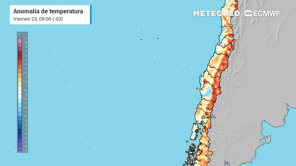 Mapa de anomalías del ECMWF muestra también la baja térmica este fin de semana en la RM.