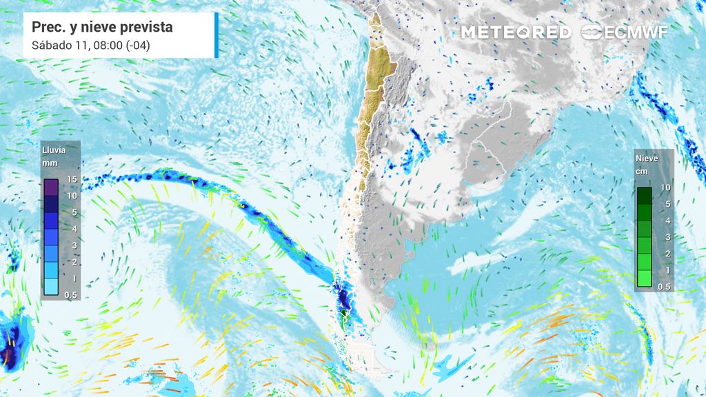 Durante la madrugada del sábado 11, las precipitaciones podrían alcanzar tasas superiores a 6 mm por hora, avanzando durante el día hacia Los Lagos y Los Ríos. Ya el domingo 12, la lluvia, aunque más débil, alcanzaría La Araucanía y el Biobío, mientras Magallanes cerrará la semana con condiciones inestables.