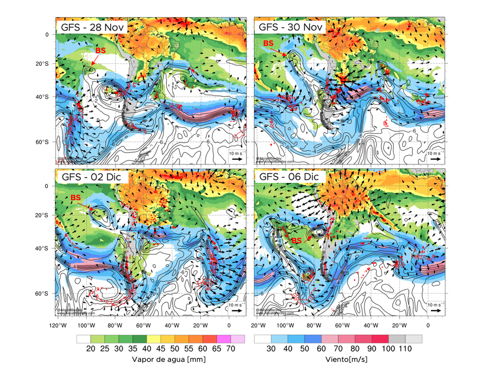 Según GFS, la segregación ocurrió el día 02 de diciembre, y ya se puede ver en las imágenes de satélite de vapor de agua. Sin embargo, la perturbación asociada a esta baja segregada data del 28 noviembre, cuando otro sistema estaba afectando a Chile central. En ese momento comenzó la segregación.