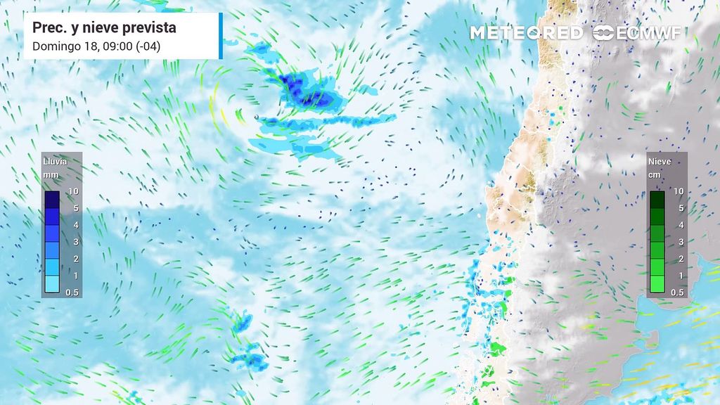 Desde la noche de este domingo (18) un nuevo pulso de precipitaciones ingresará a la RM. En esta ocasión la inestabilidad y la humedad que ya se hacen presentes sobre sectores capitalinos entregarán mayor energía a este sistema, ayudando a activar las lluvias de buena manera. Se espera que los chubascos se hagan notar durante la madrugada del lunes (19) manteniéndose hasta horas cercanas al mediodía. La proyección del ECMWF indica además la caída de nieve hacia zonas cordilleranas.