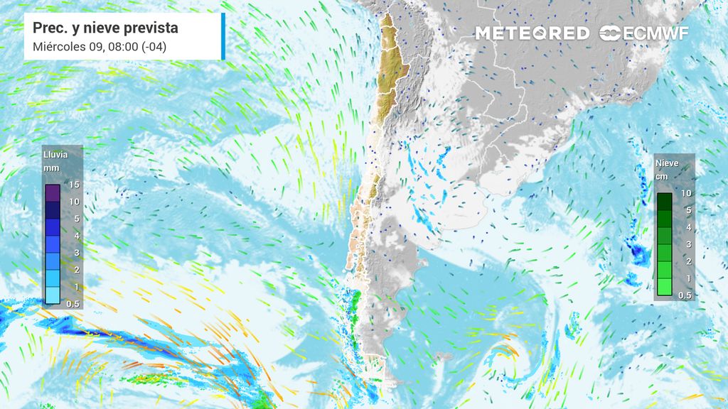 Las precipitaciones más abundantes se concentrarán en tramos insulares de la Región de Aysén, aunque los efectos del frente se sentirán también sobre Magallanes, Los Lagos y marginalmente en la Región de Los Ríos.