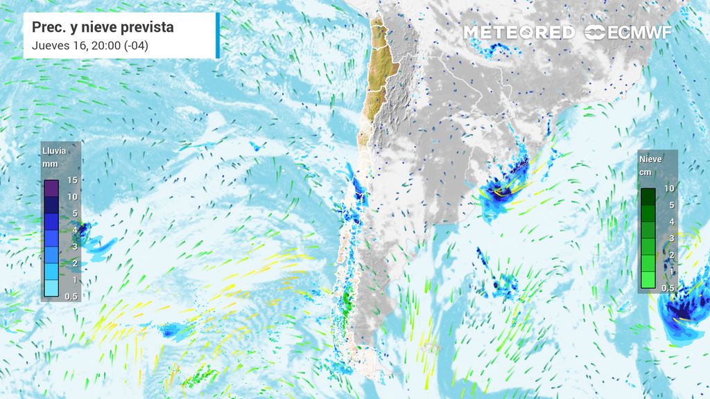 Sin embargo, este frente frío tendrá mayor actividad desde la región de O’Higgins hacia el sur. En el sector costero, localidades como Pichilemu podrían recibir alrededor de 3 a 4 mm, mientras que Constitución y Cobquecura acumularían entre 5 y 6 mm durante el día.