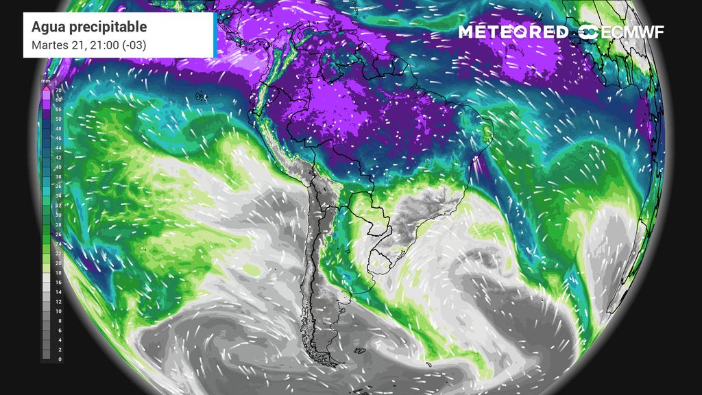 El análisis de la información emitida por el ECMWF destaca que el margen frontal no solo llegará con lluvias a Chile centro sur.