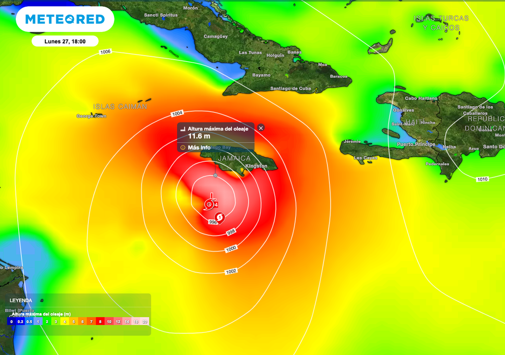 Melissa podría ser el huracán más fuerte que Jamaica haya experimentado en décadas. Además de las lluvias, es probable que Melissa cause una marejada ciclónica potencialmente mortal en la costa sur de Jamaica, que alcanzará un máximo de alrededor de 4 metros (13 pies).