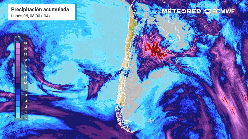 Entre la Región del Ñuble y la Región de Los Ríos se ubicará el tramo del país que podría ganar un domingo (05) nuboso y con probabilidad de chubascos. A pesar que los modelos no apuntan a que será un fenómeno intenso, la probabilidad de que se desarrollen tormentas eléctricas estará presente, especialmente hacia sectores cordilleranos del tramo.