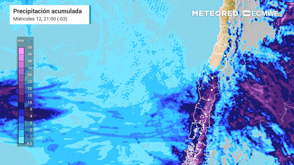 "Ni el anticiclón subtropical frenará las lluvias de este martes entre Ñuble y Los Ríos", avisa Meteored y el ECMWF