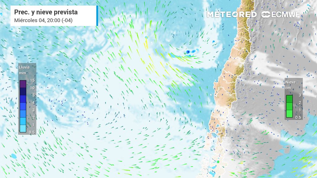 También para el tramo norte de la Región de Biobío -incluyendo la cordillera de Los Andes- ya que para Cabrero se prevén unos 5 mm y en Antuco rondarán los 2 mm en ese período de tiempo.