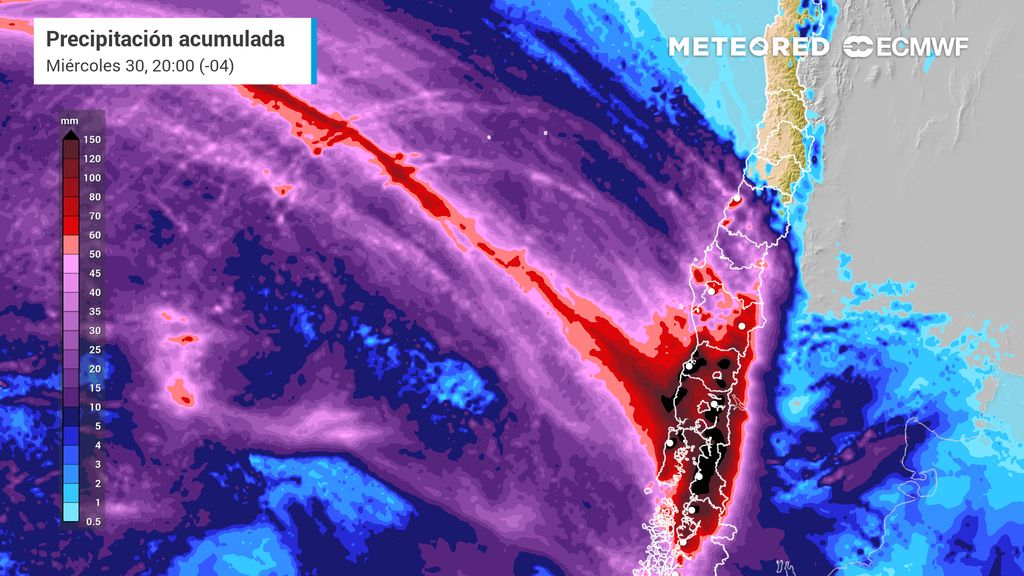 Nuestra referencia meteorológica del ECMWF (Centro Europeo para Pronósticos a Mediano y Largo Plazo) señala que este nuevo evento aterrizará entre la madrugada y la mañana del miércoles 30 de julio en la octava región.