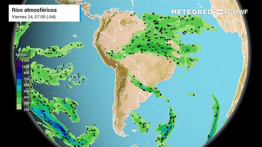 Así como los frentes tendrán la puerta abierta, también lo estará para el vapor de agua. Aunque los ríos atmosféricos previstos para la zona austral del país no serán intensos y se quedarán en la parte más baja de la escala de categorización, contribuirán para que las precipitaciones sean incrementadas en la Patagonia dejando acumulados por sobre el promedio.