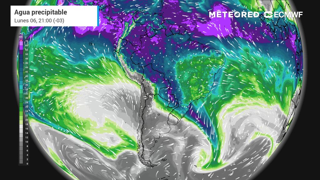 El ECMWF proyecta que los montos de agua caída acumularían durante el sábado, entre 20 y 30 mm en Cañete, Curanilahue, Lota, Santa Juana, Cabrero, Los Ángeles y Mulchén.