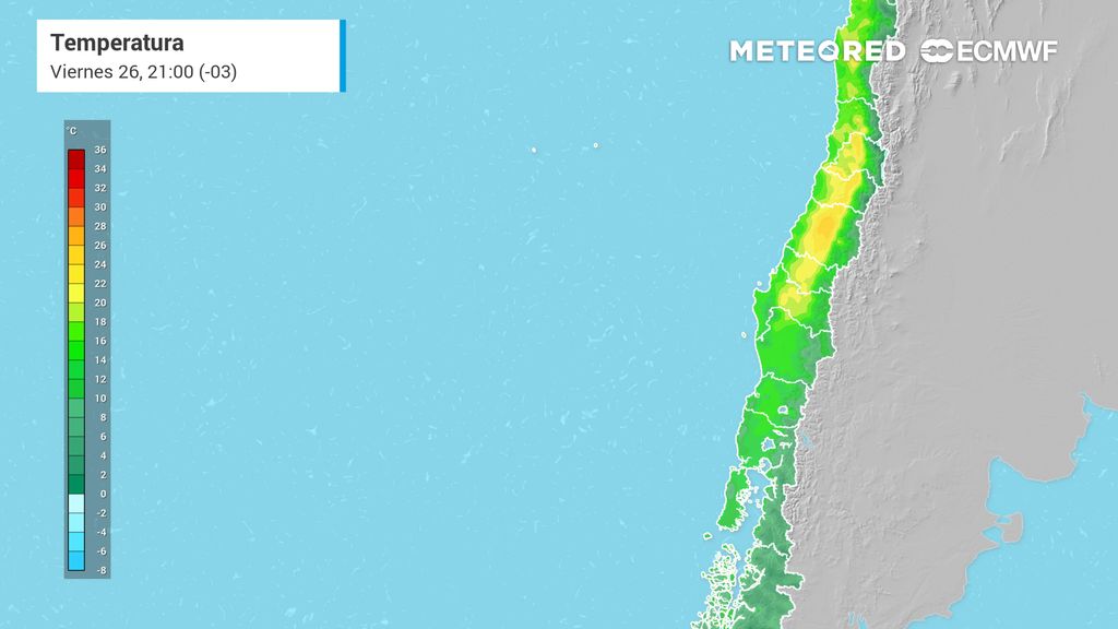 De acuerdo con las proyecciones del modelo norteamericano GFS, en sectores de la Región Metropolitana las máximas podrían acercarse e incluso alcanzar los 36 °C, especialmente en zonas del valle interior.