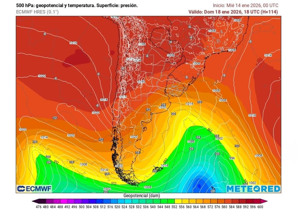 El principal responsable de este evento será la instalación de una dorsal en altura a partir del viernes 16 de enero. Este tipo de configuración atmosférica se caracteriza por la presencia de aire más cálido en niveles medios de la atmósfera y movimientos descendentes, lo que inhibe la formación de nubosidad y refuerza el aumento de las temperaturas en superficie.