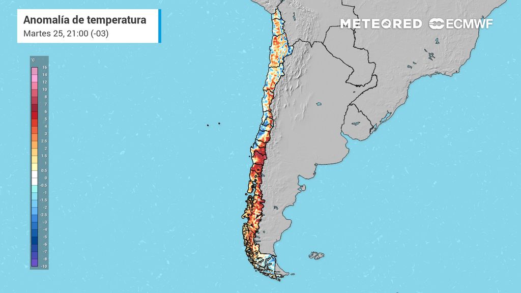 El propio modelo ECMWF destaca además que durante la jornada del miércoles (26) una zona de inestabilidad en altura podría desarrollarse sobre la cordillera central, incrementando la probabilidad de chubascos aislados, especialmente en sectores precordilleranos.