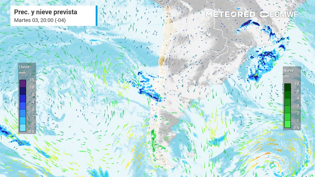 De esta manera, el sistema frontal comenzará su recorrido afectando varias regiones del sur en la madrugada del martes (03), al tiempo que una zona de bajas presiones en el océano intentará desplazar al potente anticiclón que lleva varios días marcando el tiempo sobre la Región Metropolitana.