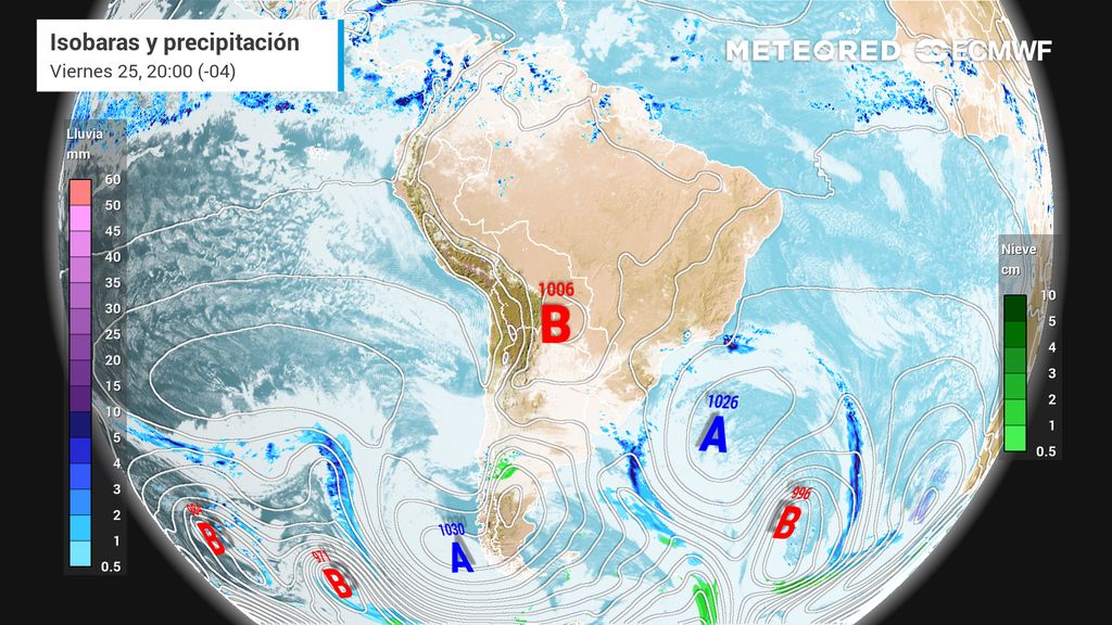 Sistema frontal se aproxima al centro-sur de Chile: ECMWF proyecta fuerte viento y abundantes lluvias jueves y viernes