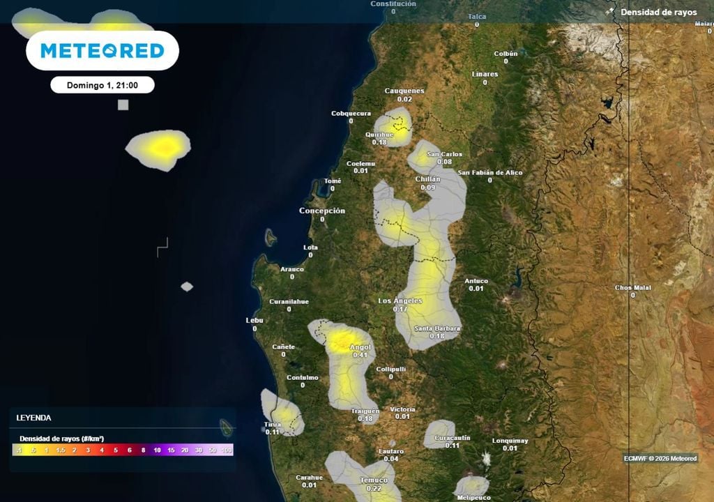 Tras el paso del sistema frontal, se instalará inestabilidad postfrontal, especialmente al sur de la región del Biobío. Esta condición podría favorecer el desarrollo de nubosidad convectiva y eventuales tormentas eléctricas.