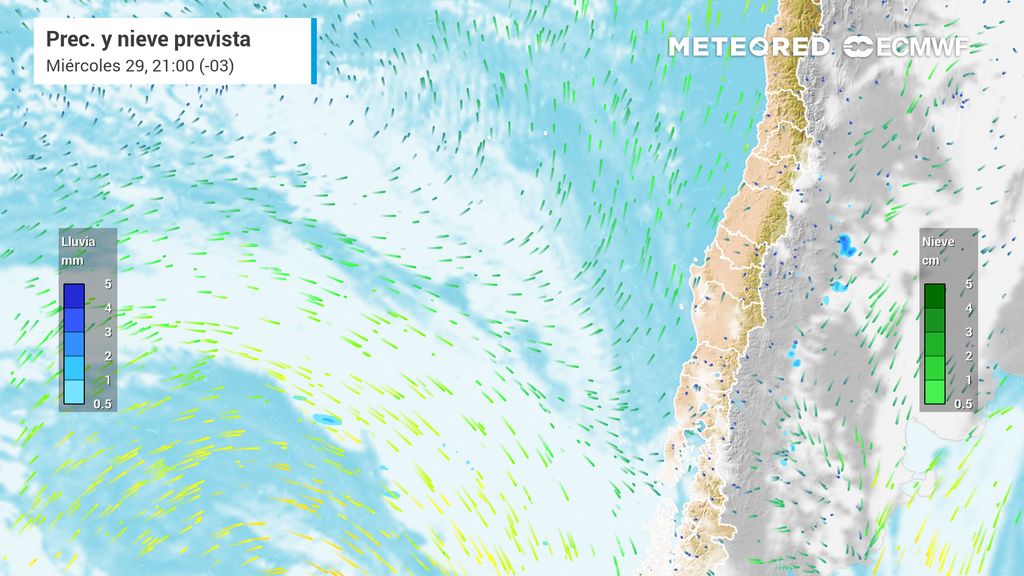 Nuestro análisis del modelo numérico del Centro Europeo para Pronósticos a Mediano y Largo Plazo (ECMWF, por su sigla en inglés) destaca que el margen frontal frío aterrizará en Chile centro sur entre la mañana y el mediodía del miércoles 29 de octubre.