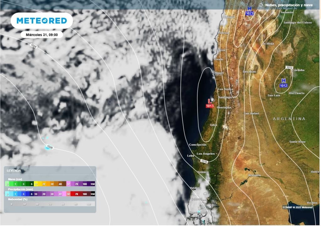 Además de las altas temperaturas, el patrón meteorológico generará escasa nubosidad. Los cielos mayormente despejados dominarán el paisaje desde Los Andes hasta Concepción, con solo algunas formaciones nubosas en el litoral durante las mañanas, particularmente en Valparaíso donde se anticipa niebla matinal para el jueves.