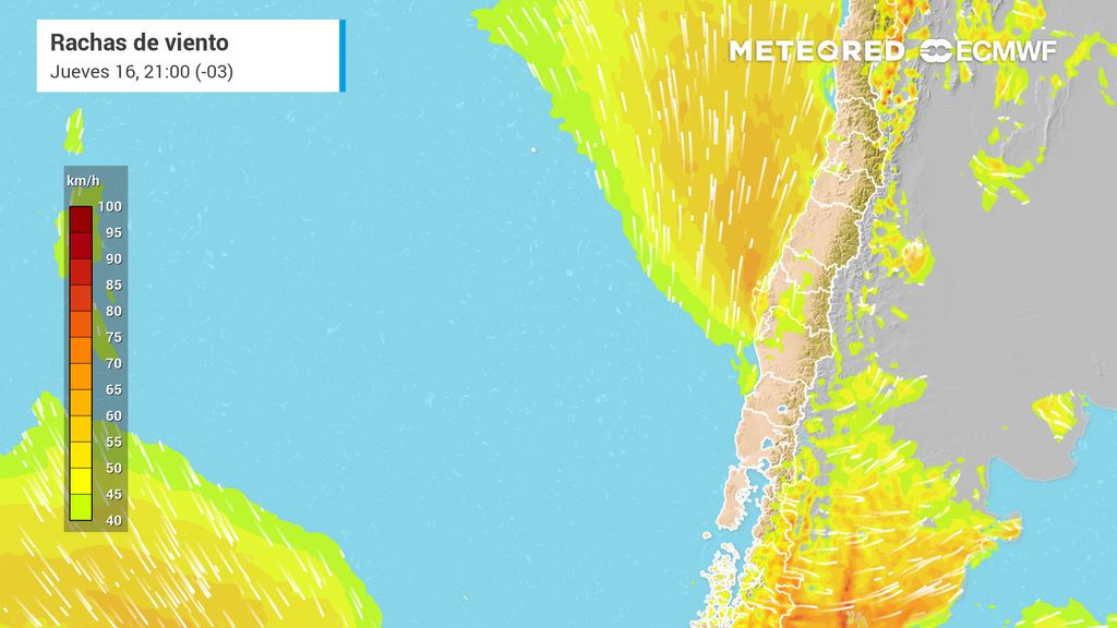 Nuestro análisis de la información actualizada del Centro Europeo para Pronósticos a Mediano y Largo Plazo (ECMWF, por su sigla en inglés) destaca que durante la tarde del jueves, las rachas de viento alcanzarían los 60 km/h en la provincia de Arauco (Región de Biobío).