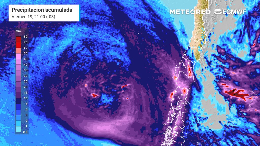 El ciclón extratropical, que ahora se encuentra frente a la costa de las zonas centro y sur de Chile, llegará con rachas de viento de 40 km/h la madrugada del jueves 18 de septiembre a la provincia de Arauco, considerando el análisis de nuestra referencia meteorológica del ECMWF (Centro Europeo para Pronósticos a Mediano y Largo Plazo).