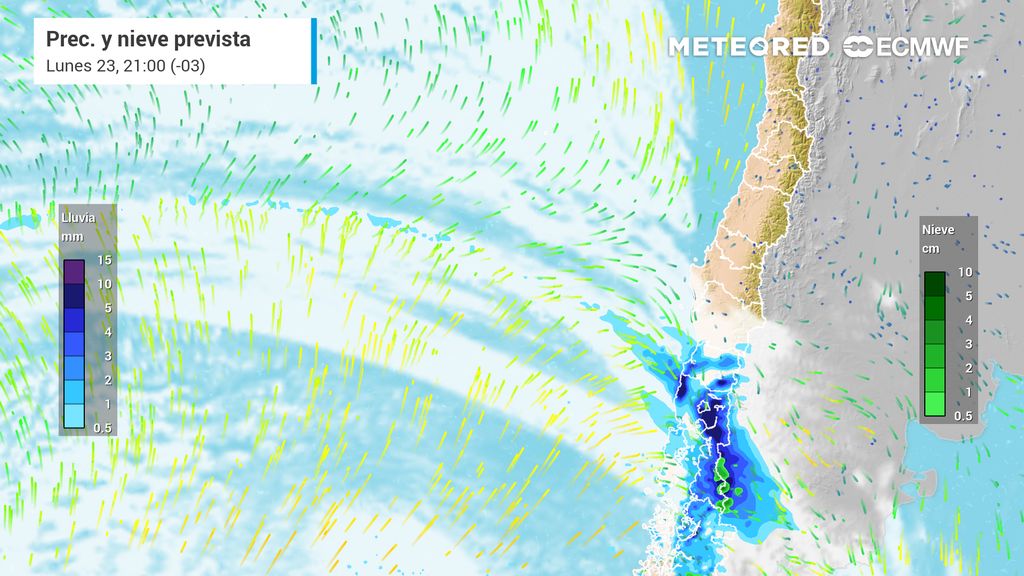 Tanto el modelo europeo como el norteamericano (GFS) coinciden en un escenario favorable para la ocurrencia de precipitaciones. Al cierre de este artículo, la probabilidad alcanza cerca de un 80 % en sectores del centro de Santiago, con posibles lluvias entre las 15:00 y 18:00 horas que dejarían montos acotados, en torno a 1 a 2 mm.