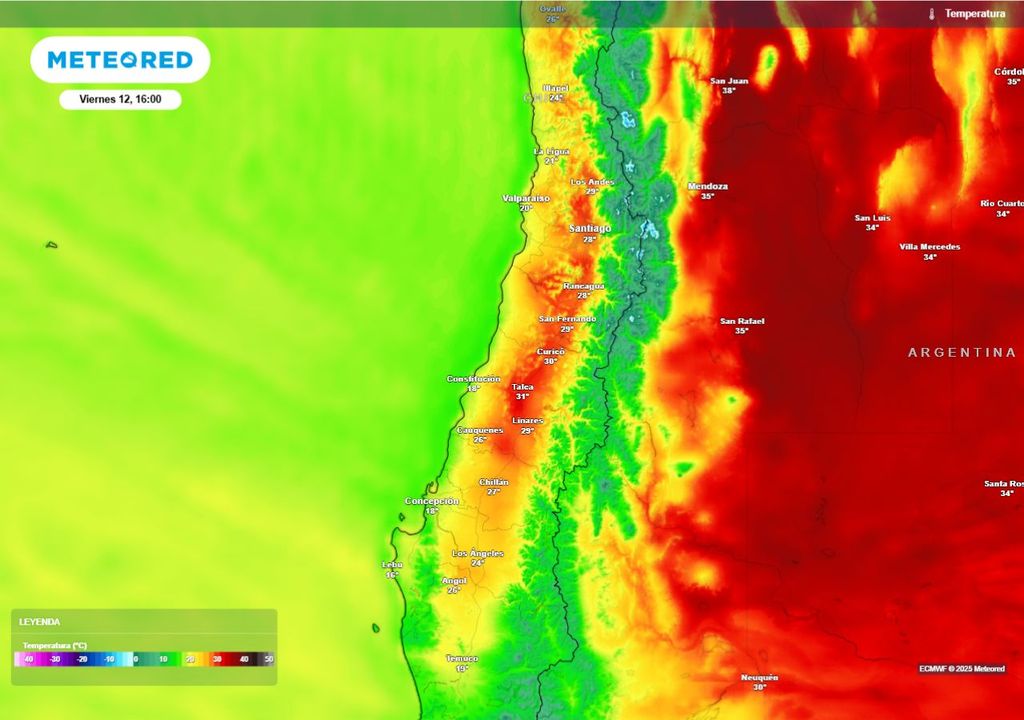 El viernes (12) marcará una transición hacia mejores condiciones climáticas en gran parte del territorio nacional. La zona central disfrutará de cielos completamente despejados y las temperaturas máximas alcanzarán valores destacables: 30°C en Los Andes, 29°C en Santiago y Rancagua, y hasta 32°C en Talca.