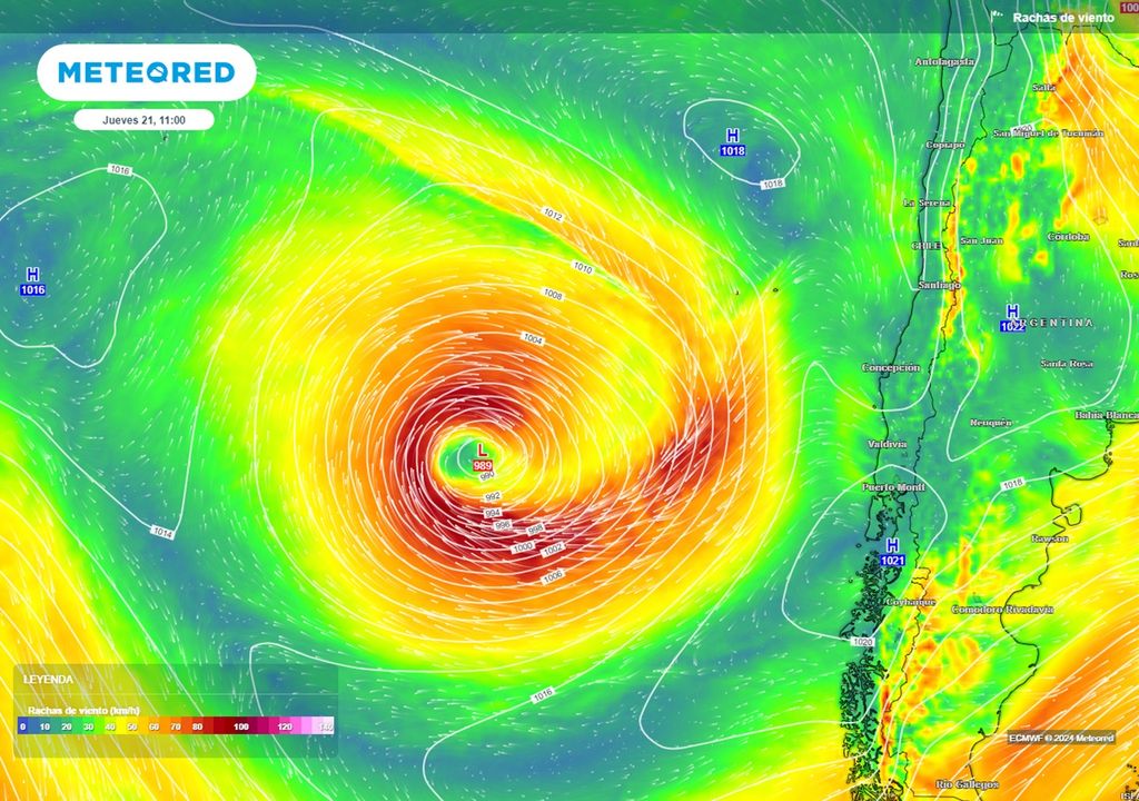 Sin embargo, las altas presiones no se quedarán por mucho, ya que en estos momentos se gesta un nuevo sistema frontal, asociado a una intensa baja presión —o ciclón— en el área oceánica y que se moverá hacia Chile, afectando el sur del país a contar del viernes (22).