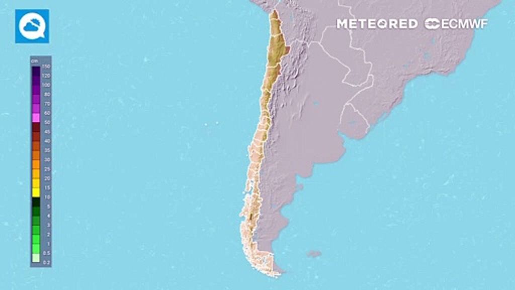 Algunos chubascos también podrían alcanzar el sector costero sur de la Región de Coquimbo. Los Vilos podría registrar entre 2 a 6 mm de precipitaciones durante la madrugada del sábado producto del avance del margen frontal norte por la zona.