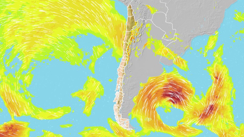 Por la zona cordillerana, la nubosidad cubría hasta la parte sur de la Región de Valparaíso. La parte activa del frente avanzará hacia el Ñuble en horas de la mañana, con rachas que alcanzarán los 90 km/h en sectores costeros. Chillán espera vientos de entre 70 a 80 km/h con el avance del sistema frontal.