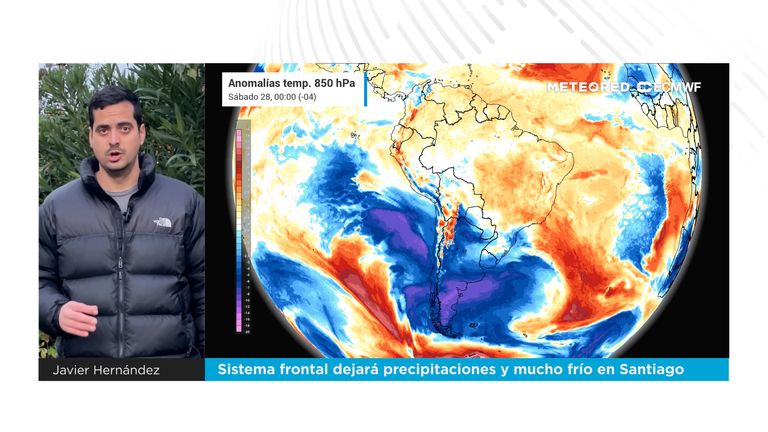 Este fin de semana un frente irrumpirá en Santiago dejando lluvias y nevadas en cordillera, se espera además que lo acompañe una masa de aire muy fría que hará descender significativamente los termómetros.
